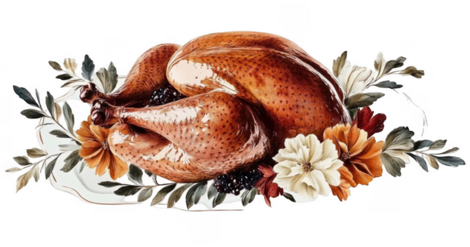 Isolated Roasted Turkey Garnished with Cranberries Rosemary and Lemon