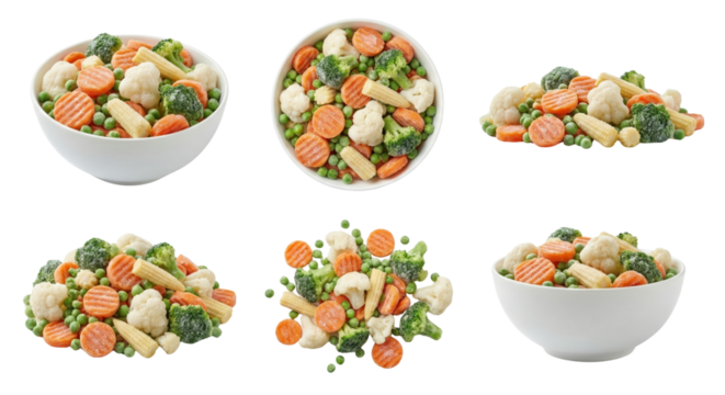 Frozen Mixed Vegetables in Bowls and Piled - Healthy Food Ingredients