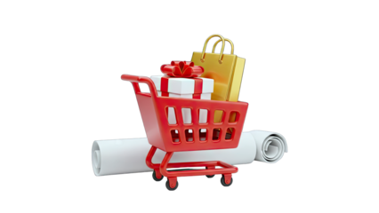 christmas gift bag and presents isolated on white background, cut out, transparent png