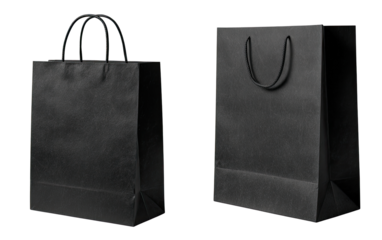 Colorful paper shopping bags with rope handles, isolated on transparent background, realistic lighting