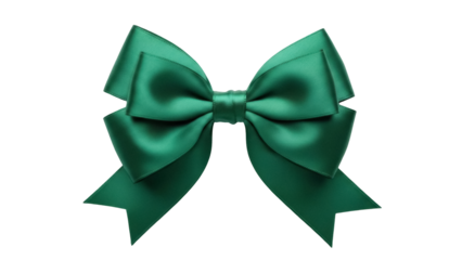 Isolated beautiful green ribbon bow for celebration decoration, present or holiday gift