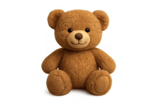 Teddy bear brown fluffy plush toy sitting, symbolizing childhood, comfort, and innocence, transparent background