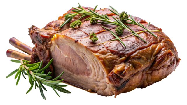 Delicious roasted pork loin roast recipe with rosemary and herbs for dinner preparation on transparent background