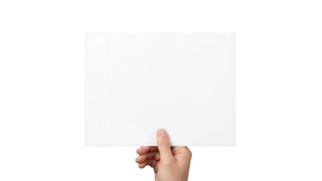 Hand holding blank white paper sheet mockup template presentation design element graphic resource isolated on transparent background