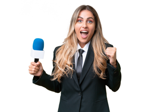 Young pretty Uruguayan tv presenter over isolated background celebrating a victory in winner position