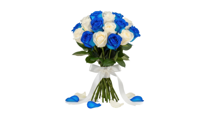 Bouquet of white and blue roses tied with ribbon isolated PNG with Transparent Background