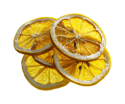 Dried lemon slices for culinary use food bright isolated on transparent background, png