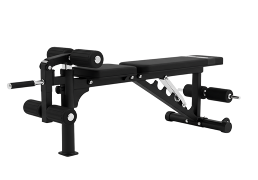 Adjustable weight bench for weightlifting and exercise isolated on transparent background
