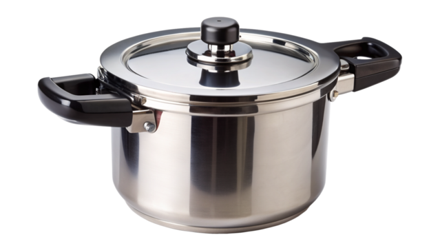 High-resolution pressure cooker isolated on transparent background for culinary illustrations, kitchen appliance designs, and cooking-themed digital projects