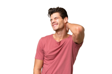 Young handsome caucasian man over isolated background with neckache