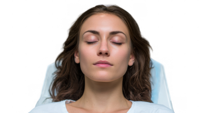 Patient lying down with closed eyes on a cat scan bed, undergoing a medical examination procedure, with transparent background for easy compositing