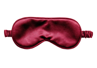 Maroon sleep mask, satin, wrinkled texture, isolated against a black backdrop