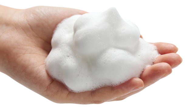 Hand holding golden vitamin supplement capsule between fingers delicately, isolated on a transparent background