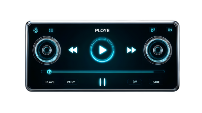 Sleek futuristic digital audio player interface with glowing blue controls and minimalist design for modern media enjoyment