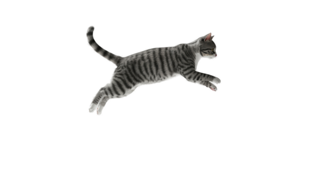 3D Realistic Gray Tabby Cat Jumping Transparent Background