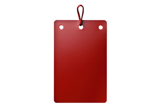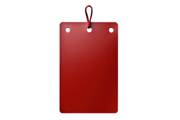 Red rectangular price tag with eyelet for retail pricing, sale, discount, and shopping promotions on transparent background