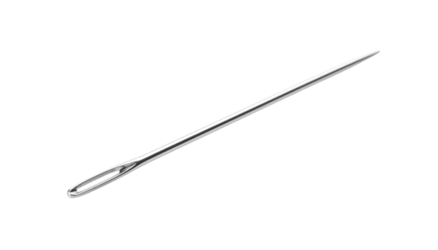 Isolated closeup of a sharp steel needle, a medical or sewing tool, on a white background