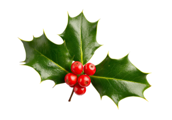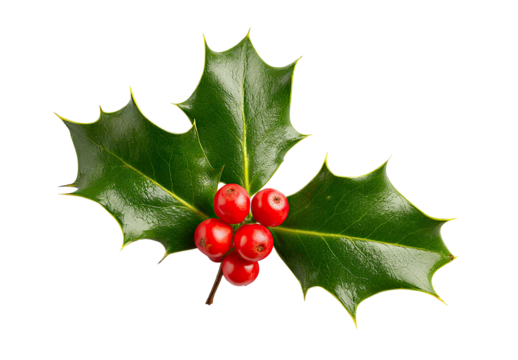 Holly leaves and red berries for christmas decoration on transparent background