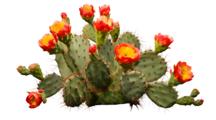 Vibrant orange prickly pear cactus on clear background