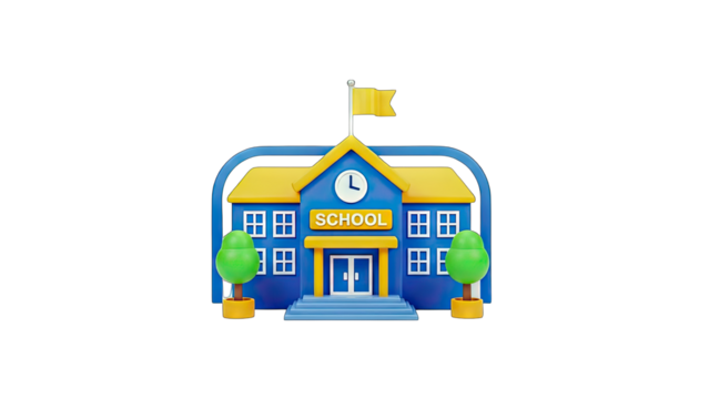 Yellow school bus isolated on transparent background. Childhood elementary school education safety transportation and travel vehicle object, USA public ride trip