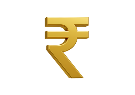 Golden 3D Rupee Symbol on Transparent Isolated Background Illustration