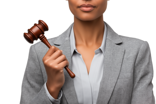 poised person holding gavel  isolated on white background