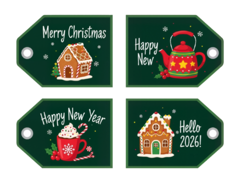 Festive Holiday Gift Tags – Merry Christmas and Happy New Year 2026 in Charming Detail