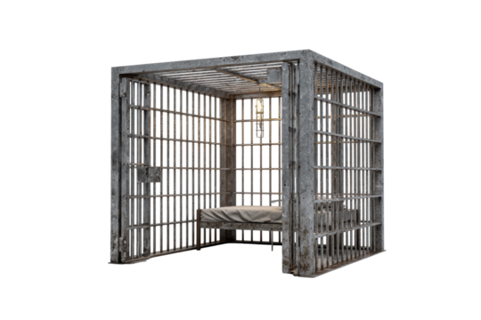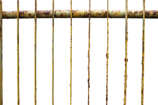 Metal jail bars isolated on transparent background, creating a concept of imprisonment, confinement, and captivity