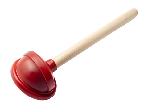 A bucket filled with various toilet cleaners, a rag, and some trash bags, all isolated on a white background.