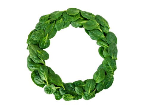 Weight loss diet challenge winner round wreath of green spinach leaves top view isolated transparent png