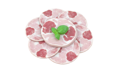 Isolated bologna loaf and sliced bologna stacked ready for sandwiches and lunch meat dishes