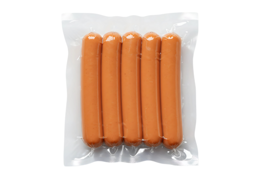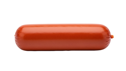 Smoked sausage isolated PNG, delicious processed meat product on transparent background, ready to eat food for sandwiches and snacks