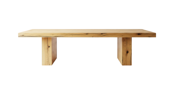 Front View of Light Brown Natural Oak Wooden Table - An Empty Blank Wood Table Mockup with Transparent Background for Product Placement
