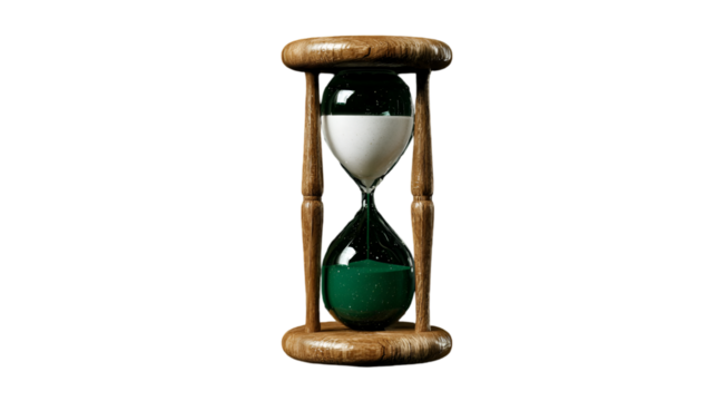 Elegant hourglass with blue sand isolated on transparent background, time management concept for deadlines and productivity