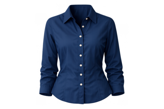 Navy blue woman's long sleeve collared button down shirt for business attire and professional corporate wear