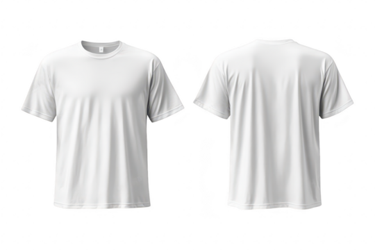 A plain white t-shirt displayed from the front and back. its simple design. ideal for custom printing or promotional use. set against a neutral background