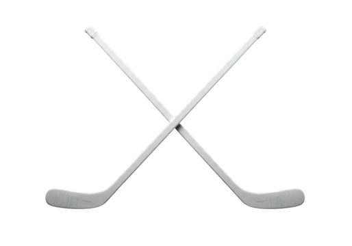 white silhouette of two professional composite ice hockey sticks crossed symmetrically on a pitch black background with backlighting and sharp detail, concept for sleek professional sports branding