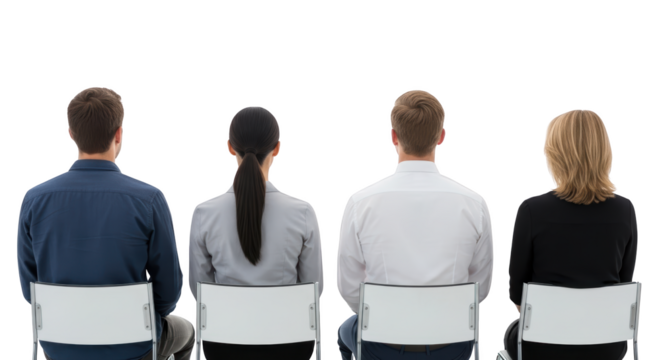 Side profile of biracial businesswoman in professional outfit on transparent background