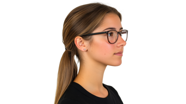 Young woman with glasses in profile view
