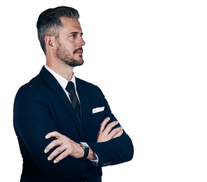 Side profile of biracial businessman in formal suit transparent background