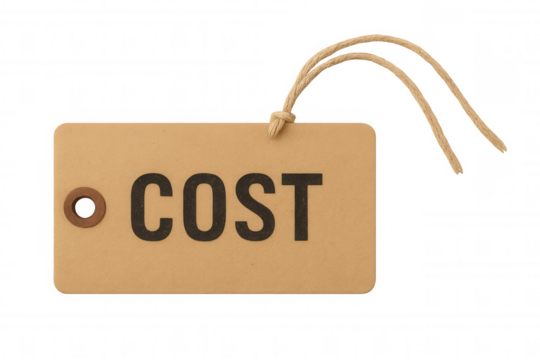 Brown cardboard tag displaying cost text, concept of finances, expenses, value, and economic market