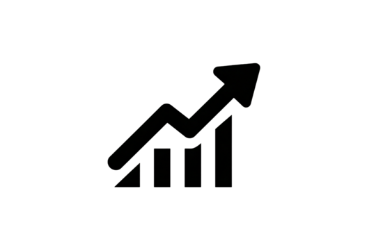 Upward trend graphic with rising arrow, showing progress and success