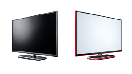 Modern Televisions: A duo of modern televisions, one displaying a blank black screen and the other a vibrant white screen, exuding a clean and contemporary aesthetic.