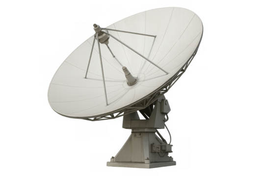 Satellite dish receiving data, broadcasting information, communicating globally, advancing technology and science on transparent background