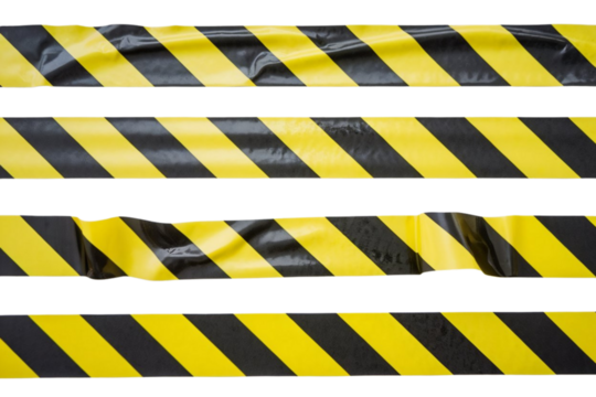 Caution tape warning barriers creating a no entry safety zone with yellow and black stripes, danger concept, transparent background
