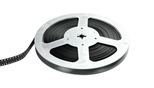 Cinematic film strip with five empty gray rectangular frames isolated on transparent background