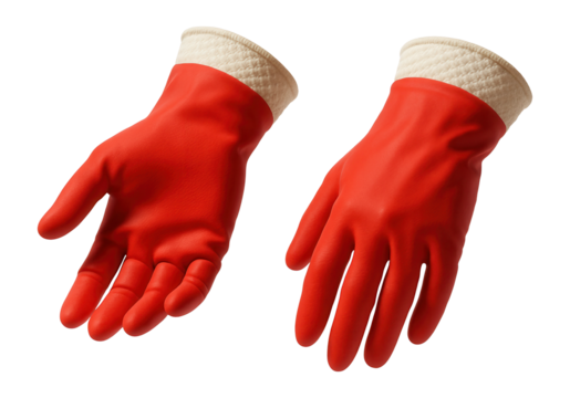 Bright red household gloves with a cotton lining, designed for comfort during prolonged use in household chores.