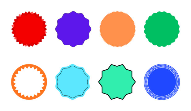 Set of 8 Colorful Starburst and Circle Badges Vector