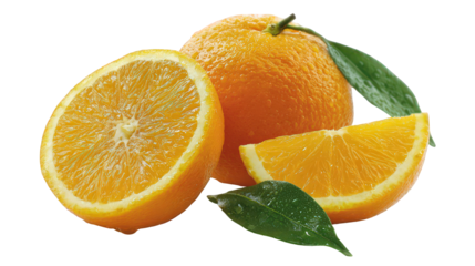 Bright Orange Fruit Slices with Green Leaves on Transparent Background