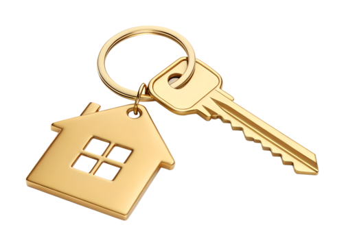 Shiny new house keys with a charming home-shaped keychain, symbolizing homeownership, real estate, and the dream of owning a property